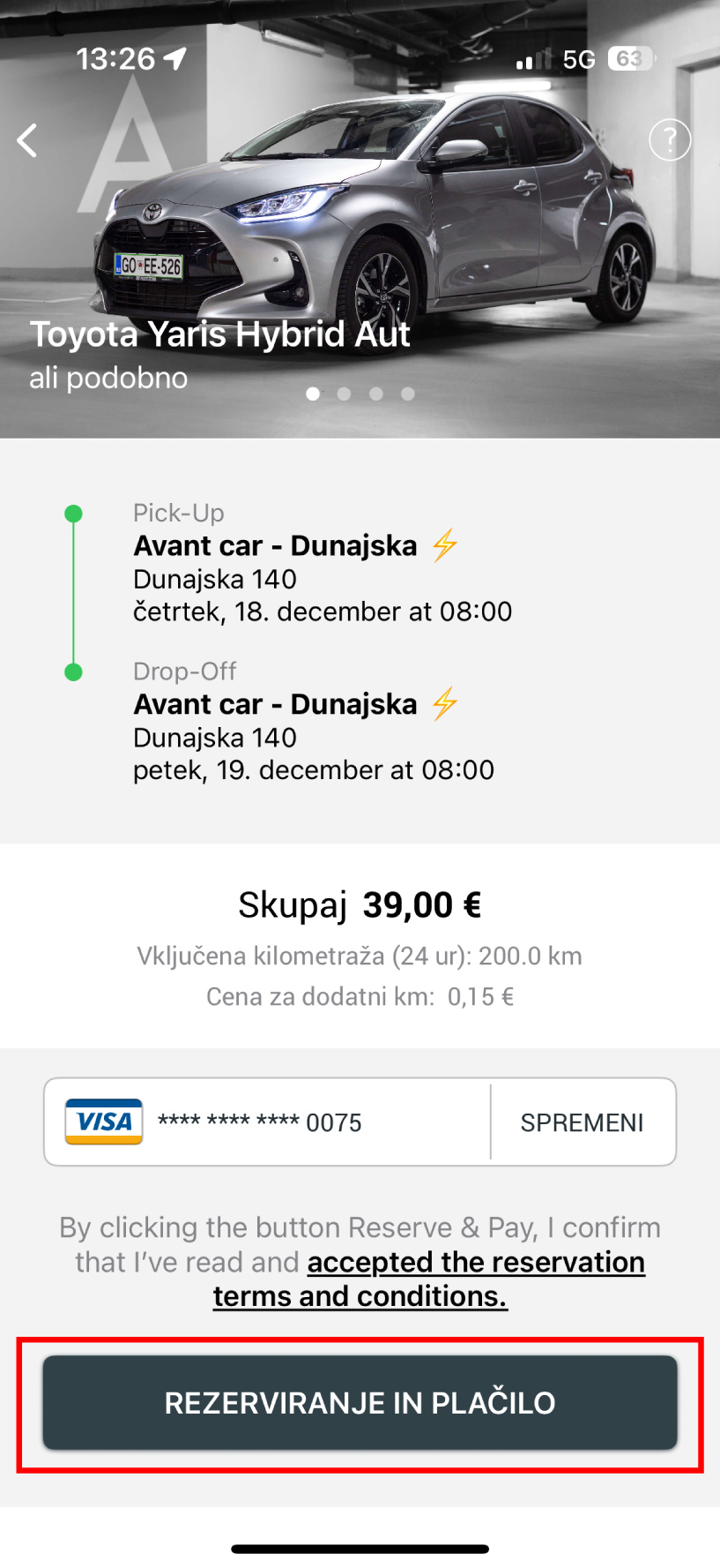 Враќањето и преземањето на возилото се возможни на локациите кои секогаш се наведени во апликацијата во рамки на услугата .GO Rent.